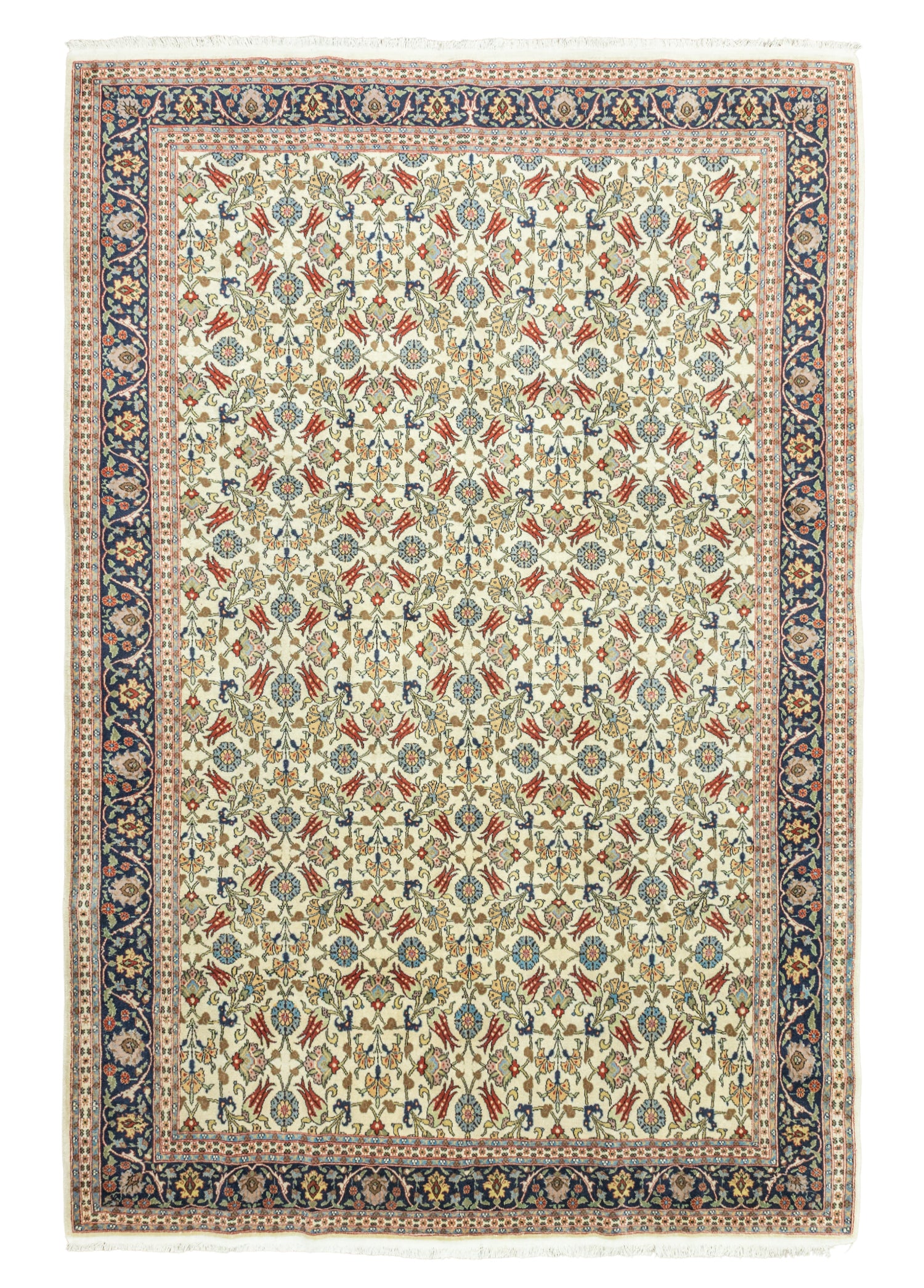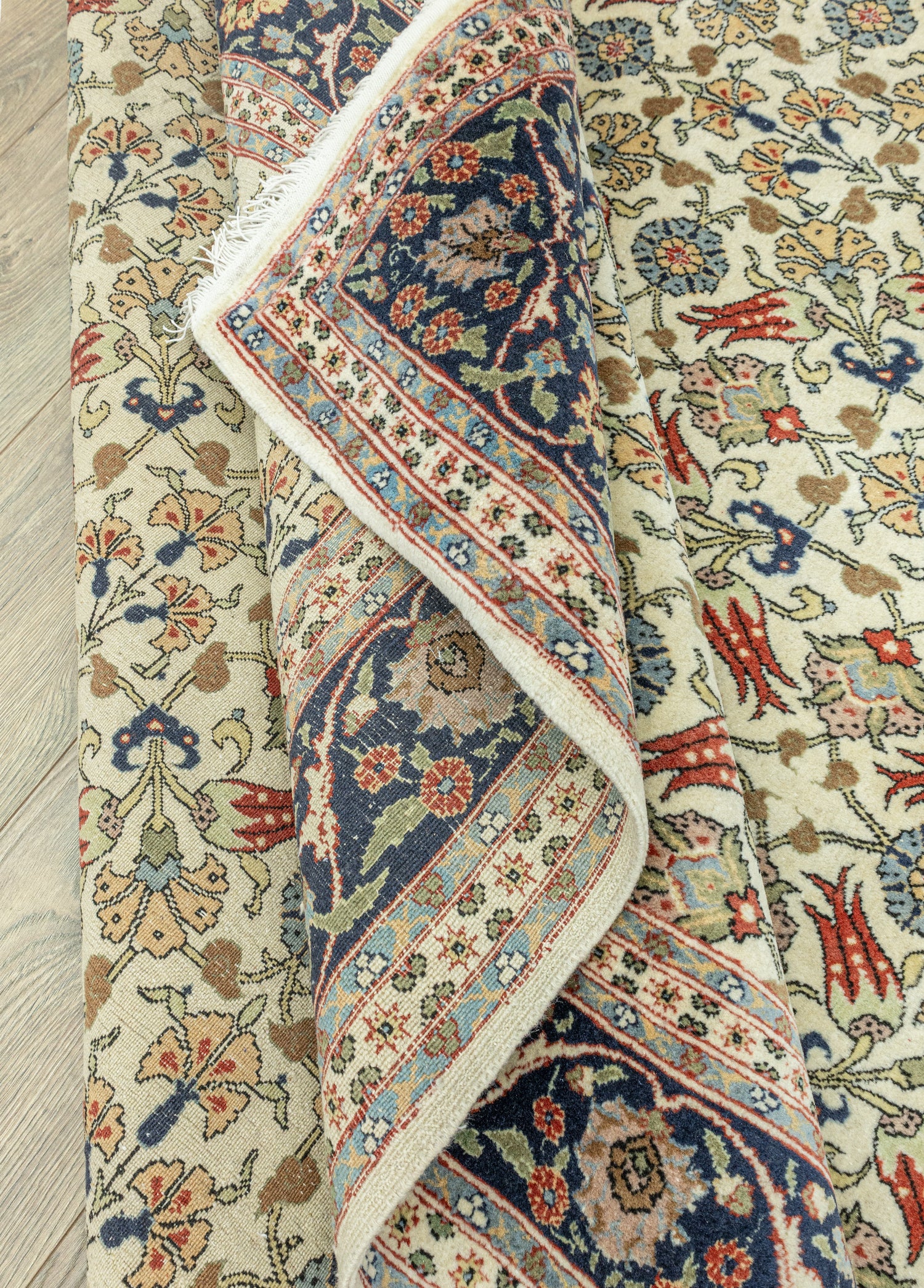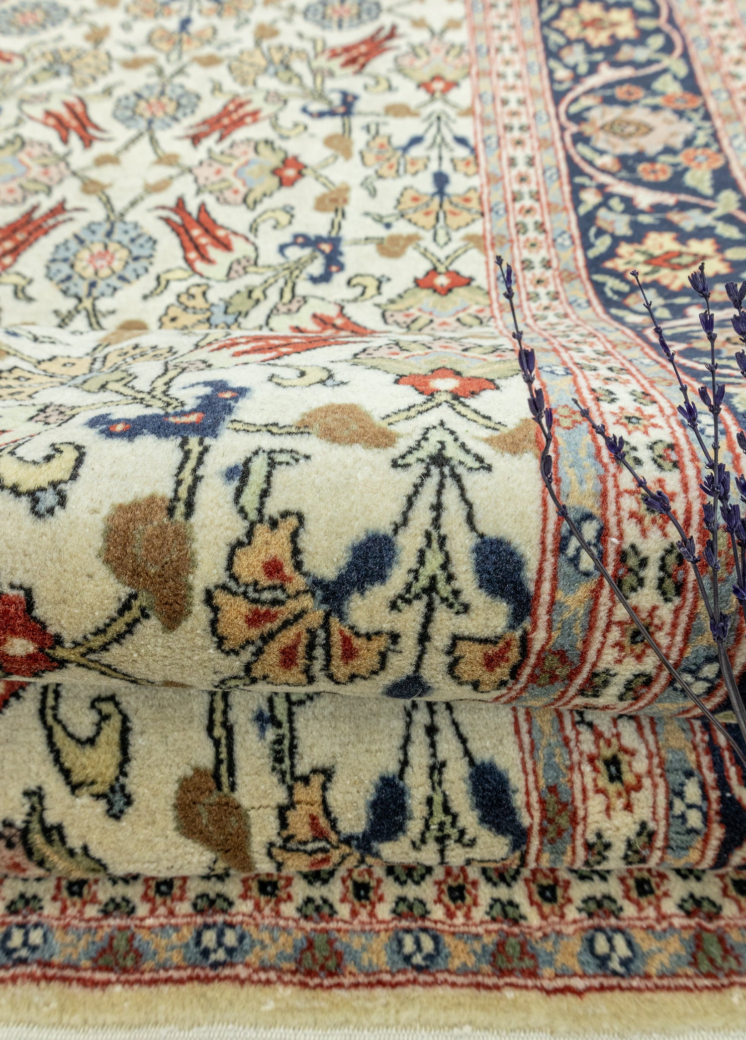 Soho Antiq el dokuma halı ve kilimleri, yaşam alanlarınıza nefes katmak için tasarlanmıştır. Bu zarif el dokuma halı, özenle seçilmiş yüksek kaliteli yün ipliklerinin ustalıkla bir araya getirilmesiyle oluşturulmuştur. Geleneksel el dokuma teknikleri kullanılarak üretilen halı, evinize sıcaklık ve zarafet katmak amacıyla özel olarak tasarlanmıştır. Renk paleti, doğanın yumuşak tonlarından ilham alınarak oluşturulmuş olup, krem ile lacivert renklerinin uyumuyla dikkat çekerken halı içerisinde bulunan diğer renkler ile uyumu yakalamaktadır. Halı, deneyimli el sanatçıları tarafından özenle dokunmuş ve Hereke yöresine özgü geleneksel tekniklerle 1970’lerde üretilmiştir, bu da halıya kültürel bir derinlik katmaktadır. Halının ebatı 196 x 296 cm olarak ölçülmüştür ve bu ölçü, halının farklı yaşam alanlarına kolaylıkla uyum sağlamasını sağlar. Halının kalınlığı ise 1 - 3 cm arasındadır. Estetik değerinin ötesinde, bu el dokuma halı, evinize özgünlük ve geleneksel bir his katma konusunda öne çıkmaktadır.