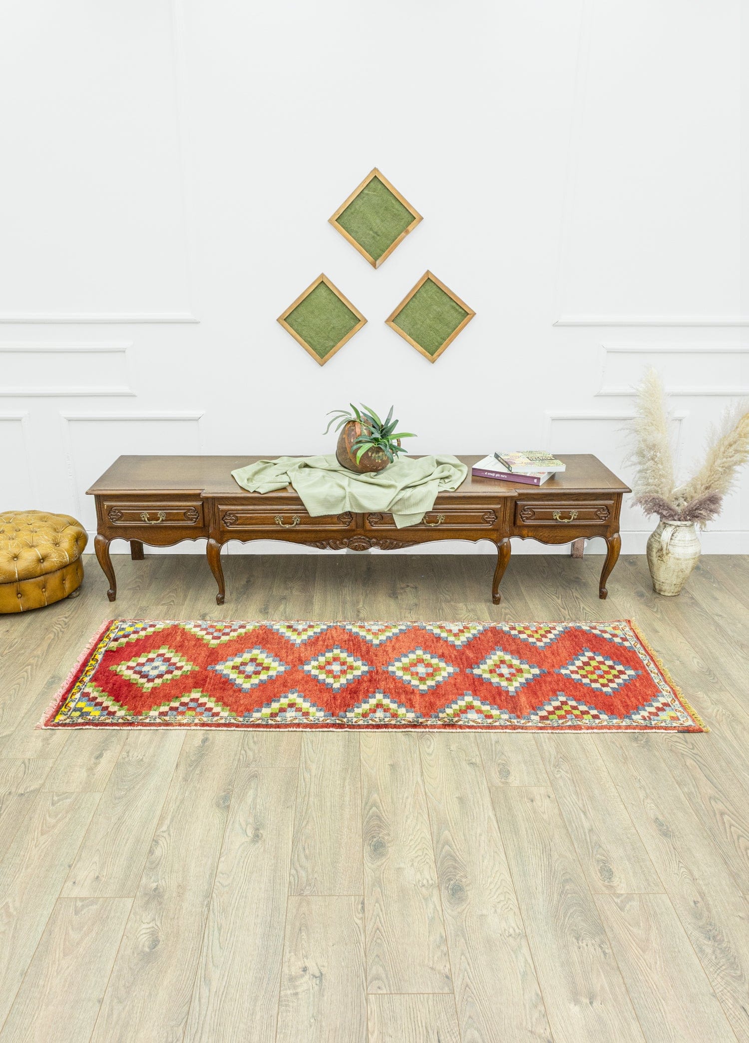 Soho Antiq halı modelleri, istediğiniz konsepte uygun tasarımları bulabileceğiniz muhteşem seçenekler sunar! Tamamen doğal yünden yapılan ve tümü el dokuması olan bu halı yolluk, 1 ile 3 cm arasında kalınlığa sahip olup boyutları 76 x 218 cm'dir. Halı kataloğumuzda çeşitli renk seçenekleri arasında yer alan kırmızı halının ana rengi, öne çıkan renktir. Ayrıca, halı modelinde diğer renkler arasında yeşil ve mavi de bulunmaktadır. Soho Antiq, tarihi ve yöresel dokunuşlarıyla halı modellerine benzersiz bir dokunuş katmaktadır. Geometrik desen adı verilen tasarımları, Ege Bölgesi yöresinden esinlenerek 1980’lerin ruhunu yansıtmaktadır. Tüm bu özel halılar, özenle uygulanan el dokuma teknikleriyle tasarlanmaktadır.