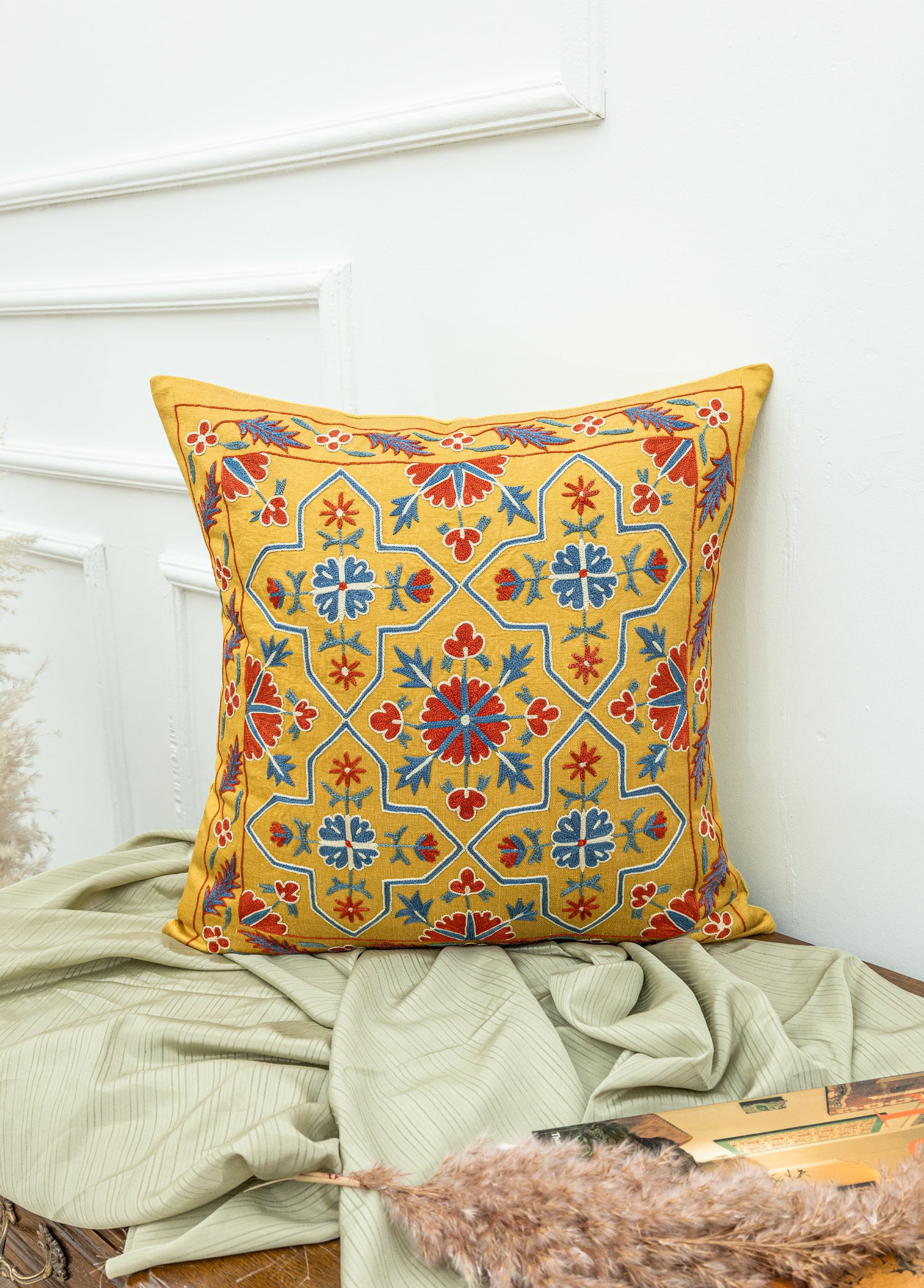 Ravina Çiçek Desenli Suzani Kırlent 50x50 cm