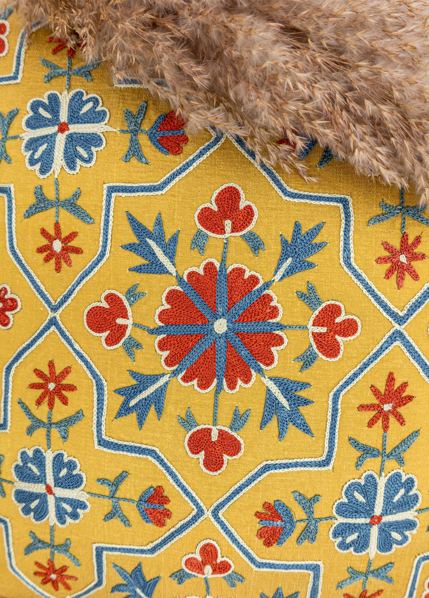 Suzani yastıklar, geleneksel Orta Asya el sanatlarının değerli ürünlerinden birisi olup, günümüzde ev dekorasyonu için eşsiz bir parça haline gelmiştir.