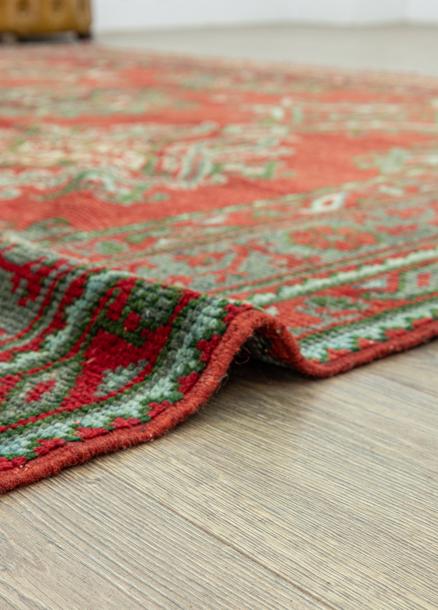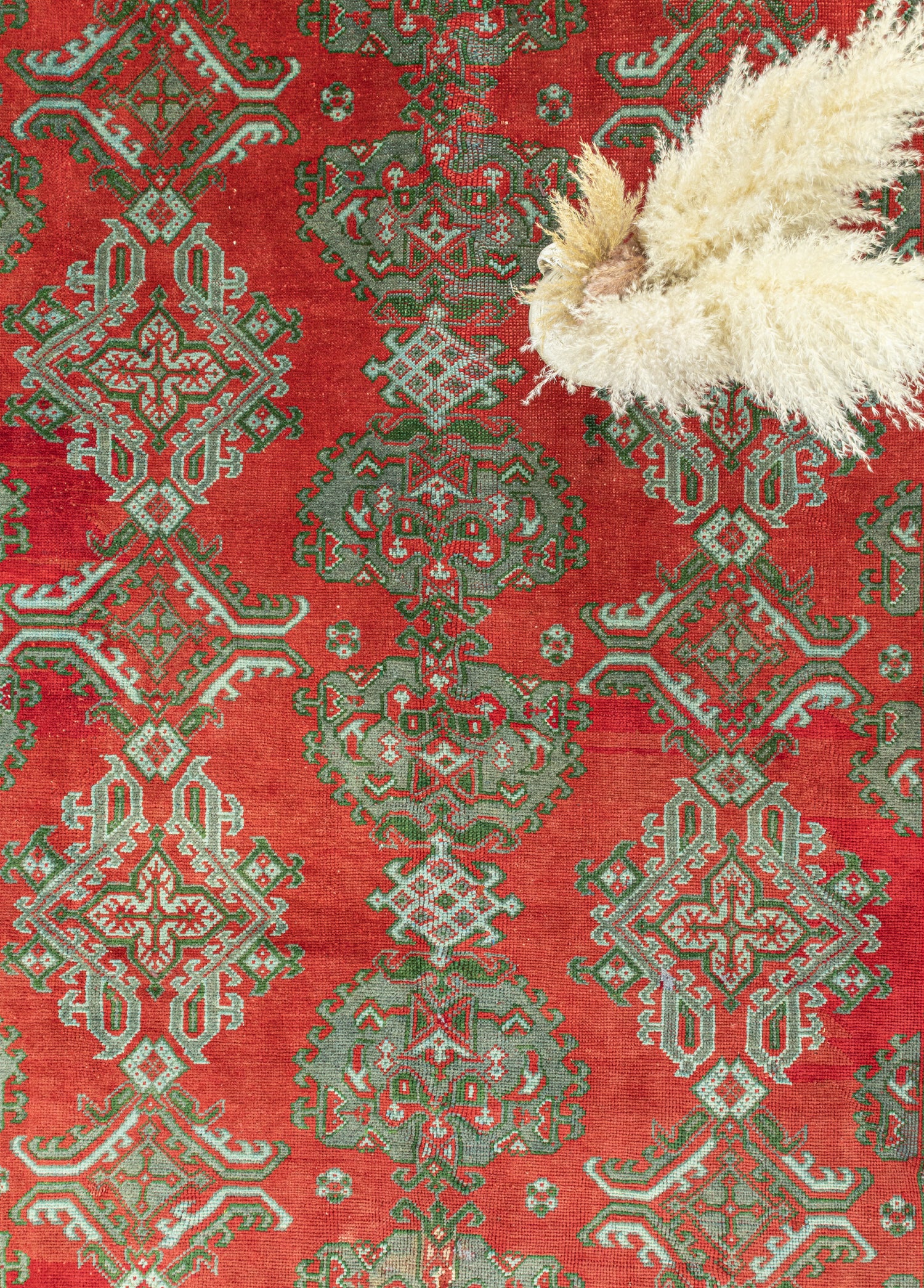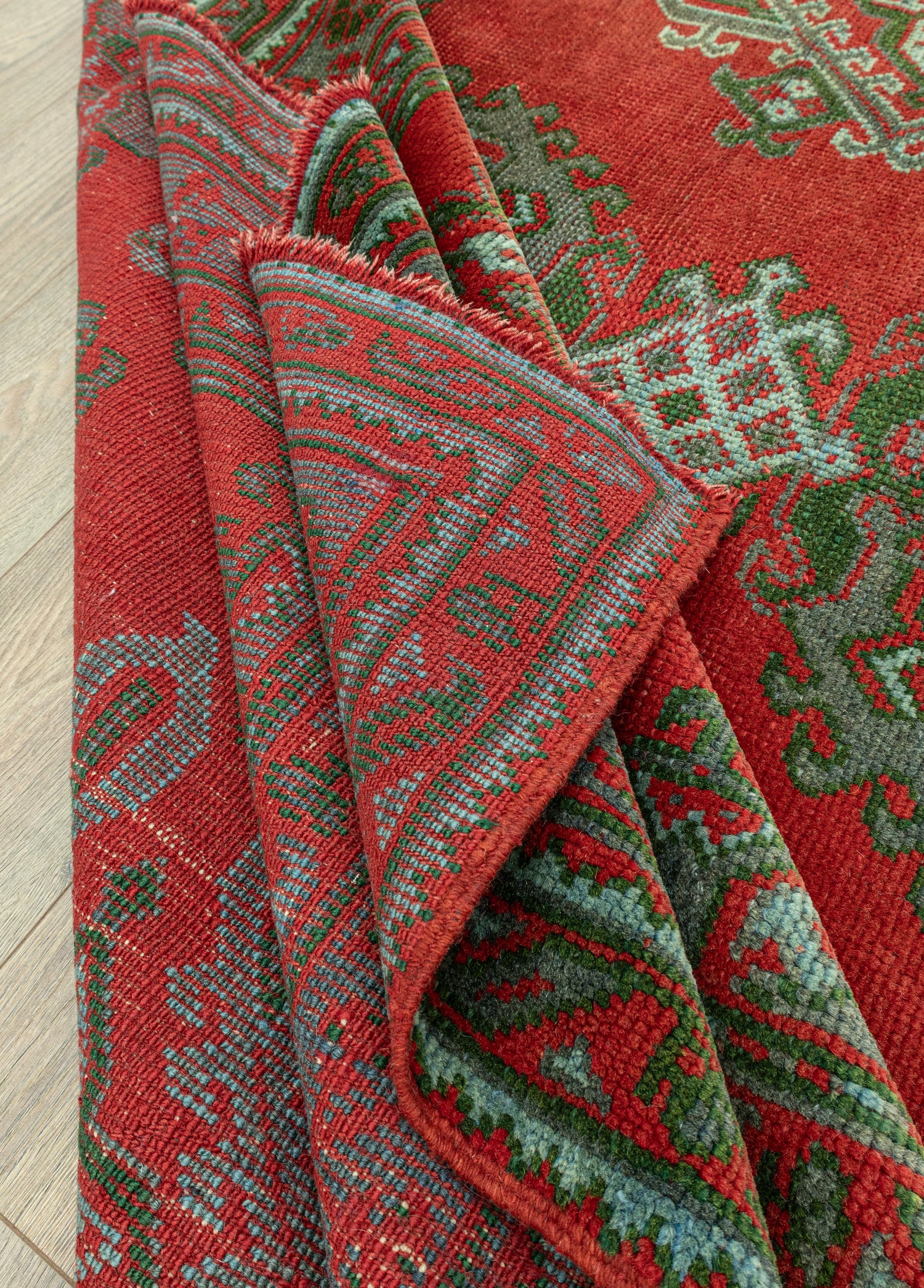 Soho Antiq el dokuma halı ve kilimleri, yaşam alanlarınıza nefes katmak için tasarlanmıştır. Bu zarif el dokuma halı, özenle seçilmiş yüksek kaliteli yün ipliklerinin ustalıkla bir araya getirilmesiyle oluşturulmuştur. Geleneksel el dokuma teknikleri kullanılarak üretilen halı, evinize sıcaklık ve zarafet katmak amacıyla özel olarak tasarlanmıştır. Renk paleti, doğanın yumuşak tonlarından ilham alınarak oluşturulmuş olup, kırmızı, yeşil ve mavi renklerinin uyumuyla dikkat çekerken halı içerisinde bulunan diğer renkler ile uyumu yakalamaktadır. Halı, deneyimli el sanatçıları tarafından özenle dokunmuş ve Uşak yöresine özgü geleneksel tekniklerle 1940'larda üretilmiştir, bu da 80 yaşında olan halıya kültürel bir derinlik katmaktadır. Halının ebatı 248 x 330 cm olarak ölçülmüştür ve bu ölçü, halının farklı yaşam alanlarına kolaylıkla uyum sağlamasını sağlar. Halının kalınlığı ise 1 - 3 cm arasındadır. Estetik değerinin ötesinde, bu el dokuma halı, evinize özgünlük ve geleneksel bir his katma konusunda öne çıkmaktadır.