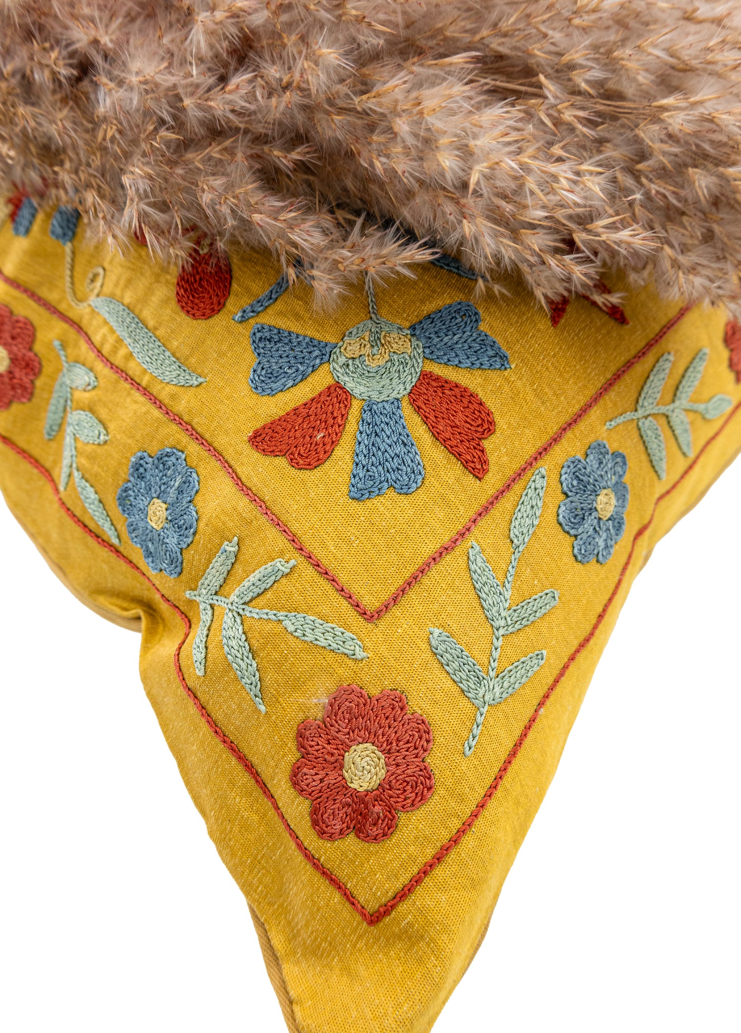 Tayen Çiçekli İpek Kırlent 50x50 cm