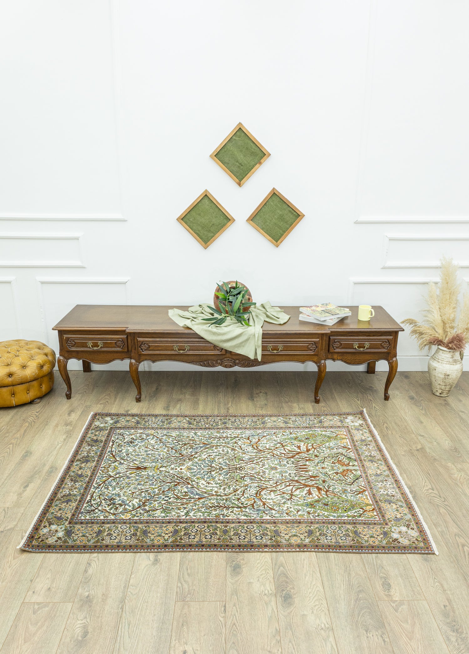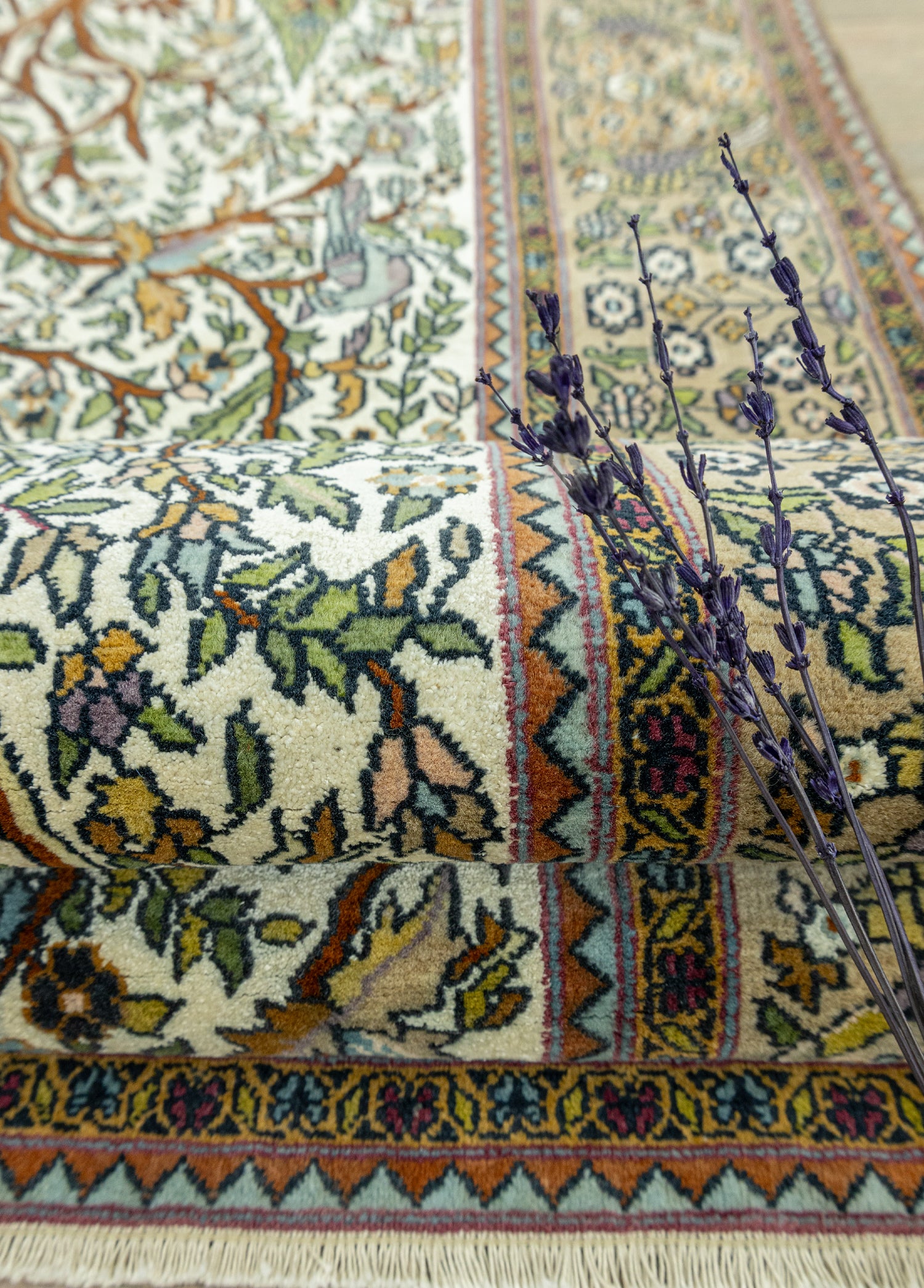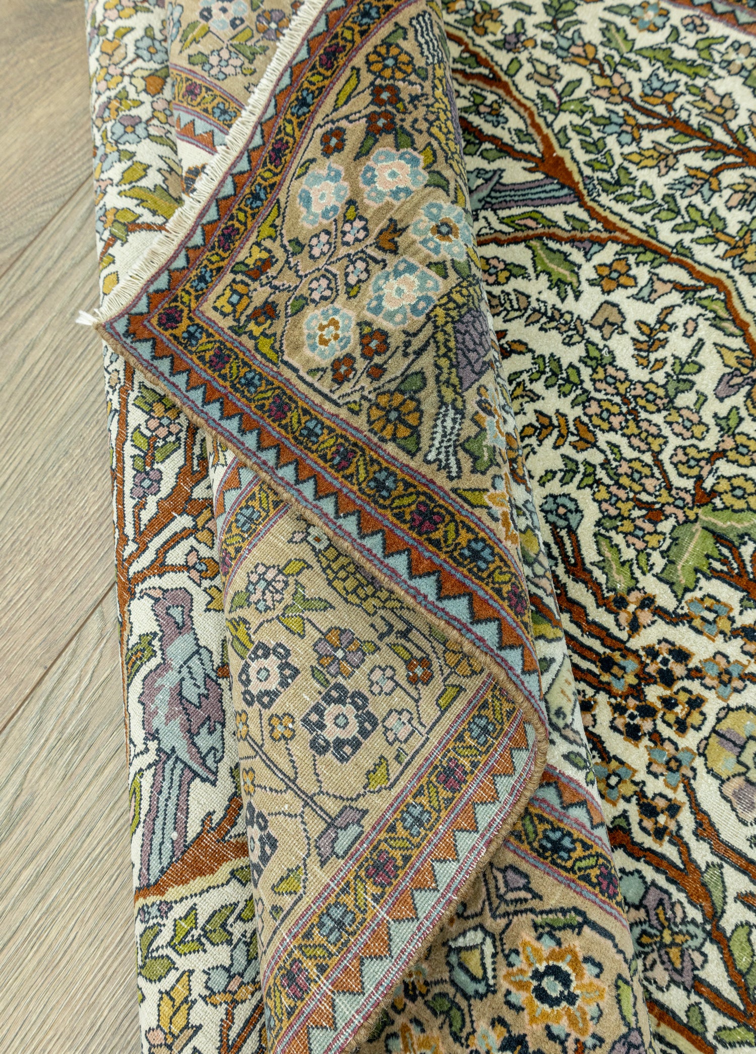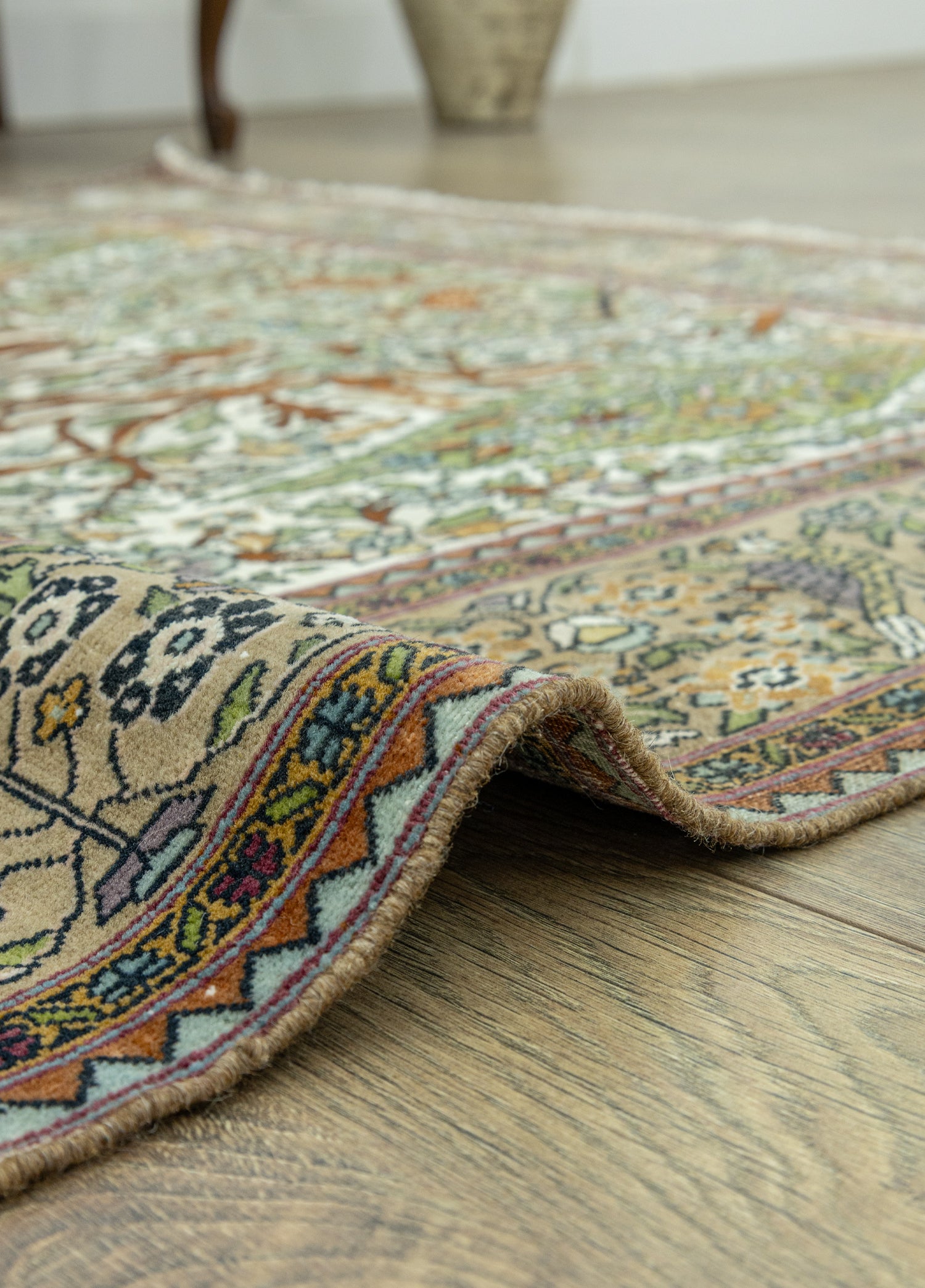 Soho Antiq koleksiyonumuzda, kültürel ve geleneksel özelliklere sahip halılar bulunmaktadır. Bu halı, 1940'lardan gelen izleri taşıyarak özellikle İran yöresine ait kültürel renk ve dokunuşlarını yansıtır. Tüm bu geleneksel dokunuşları, halı üzerindeki hayat ağacı deseni tasarımında görmek mümkündür.