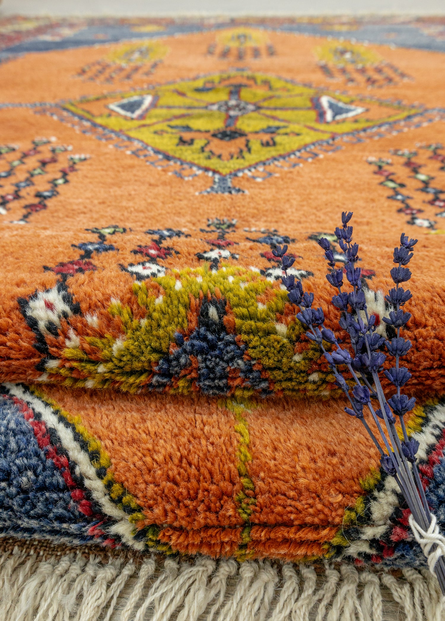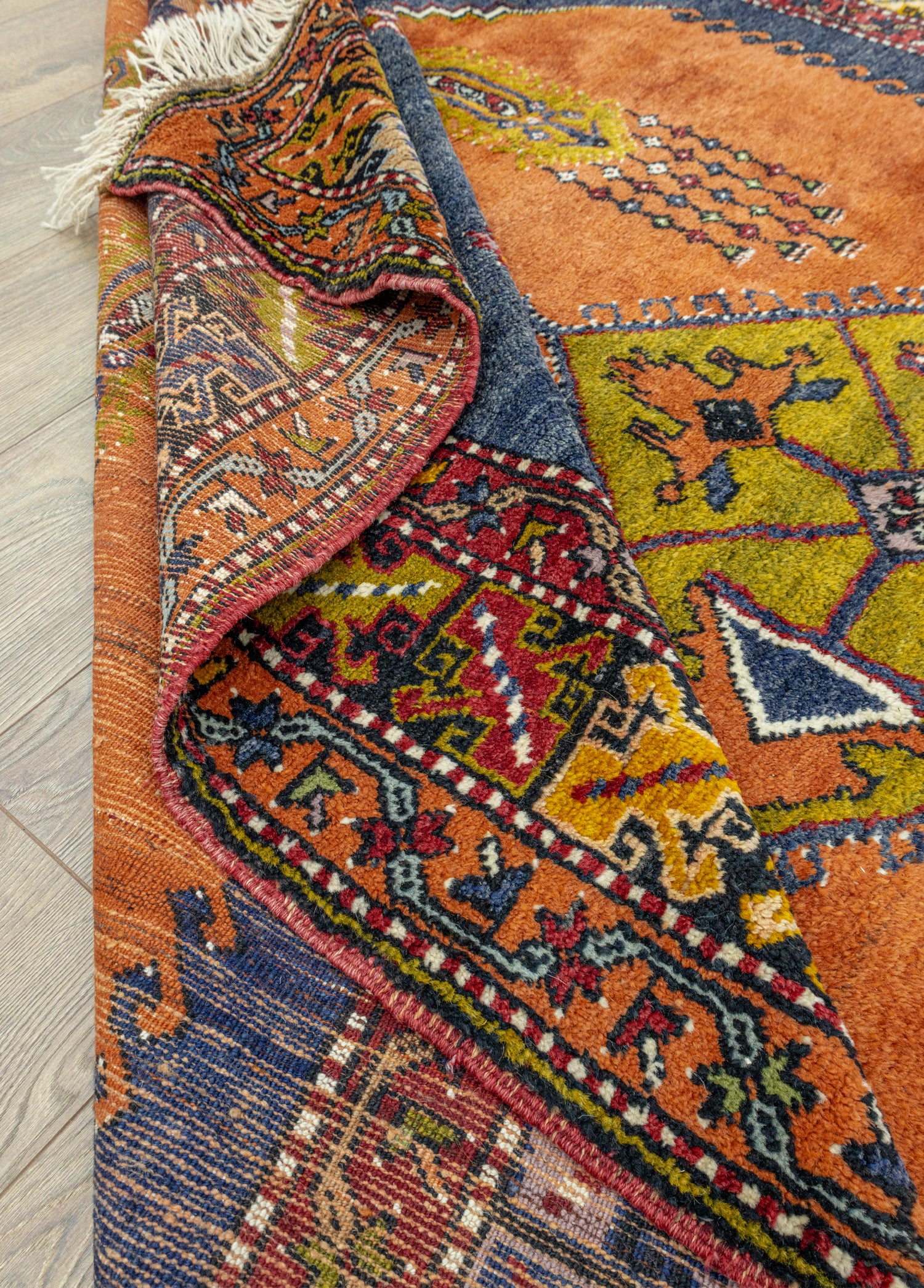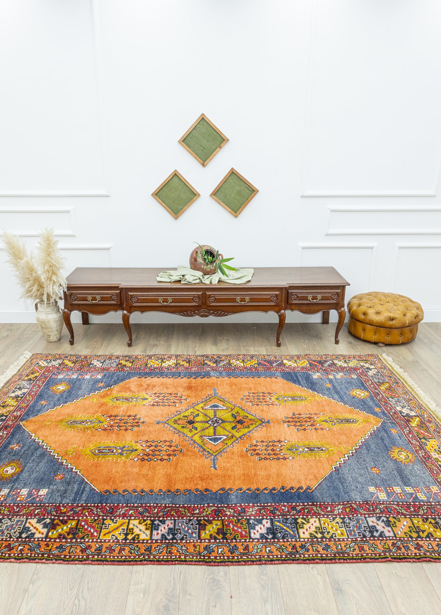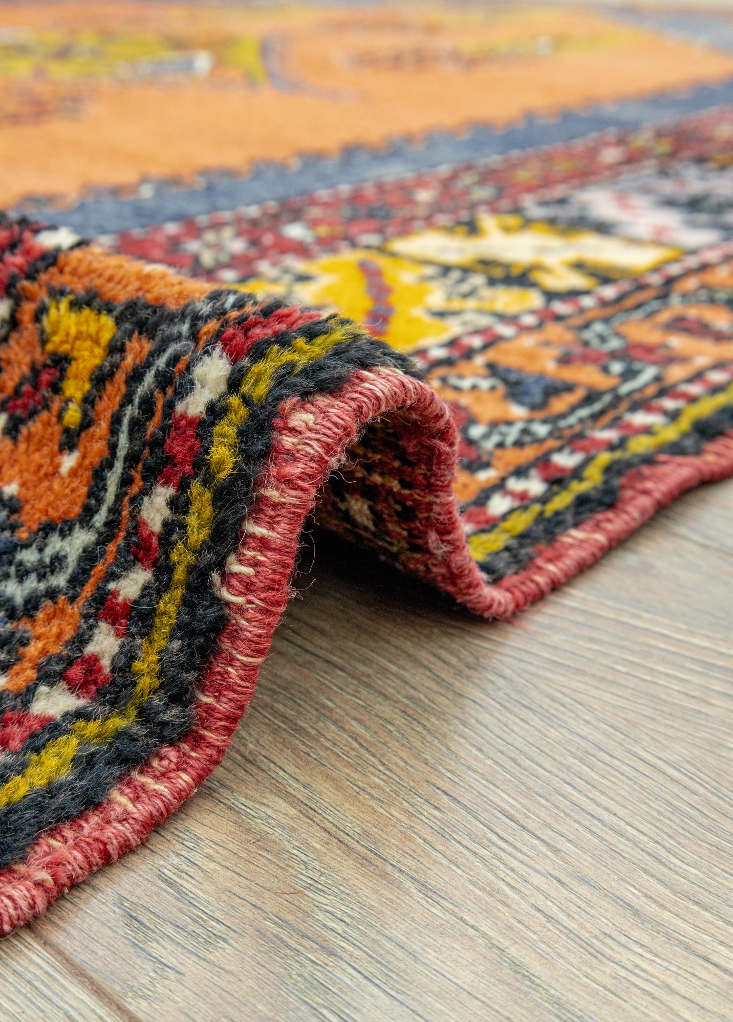 Soho Antiq el dokuma halı ve kilimleri, yaşam alanlarınıza nefes katmak için tasarlanmıştır. Bu zarif el dokuma halı, özenle seçilmiş yüksek kaliteli yün ipliklerinin ustalıkla bir araya getirilmesiyle oluşturulmuştur. Geleneksel el dokuma teknikleri kullanılarak üretilen halı, evinize sıcaklık ve zarafet katmak amacıyla özel olarak tasarlanmıştır. Renk paleti, doğanın yumuşak tonlarından ilham alınarak oluşturulmuş olup, turuncu ile lacivert renklerinin uyumuyla dikkat çekerken halı içerisinde bulunan diğer renkler ile uyumu yakalamaktadır. Halı, deneyimli el sanatçıları tarafından özenle dokunmuş ve Afyon yöresine özgü geleneksel tekniklerle 1970’lerde üretilmiştir, bu da halıya kültürel bir derinlik katmaktadır. Halının ebatı 194 x 278 cm olarak ölçülmüştür ve bu ölçü, halının farklı yaşam alanlarına kolaylıkla uyum sağlamasını sağlar. Halının kalınlığı ise 1 - 3 cm arasındadır. Estetik değerinin ötesinde, bu el dokuma halı, evinize özgünlük ve geleneksel bir his katma konusunda öne çıkmaktadır.